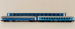 https://www.listadotren.es/viajeros/phot...p?tid=5778 Parece que la tonalidad que más se asimila, sea la del modelo de MFTrain, que además está bastante mejor reproducido que todos los demás modelos de este coche, especialmente las ventanillas, que hasta la fecha han ido apareciendo. También tengo el modelo de Roco (Ref. N24489), cuya tonalidad de azul, es similar al modelo a escala H0 de Electrotren (Ref. 18003K). Véase la fotografía comparativa que adjunto, con los tres modelos en mi vitrina. Tampoco parece haber consenso en el color del techo. En el modelo de Electrotren, es de color blanco; en el modelo de Roco, es de color plateado; mientras que en el modelo de MFtrain, es gris claro. Lo que está claro, es que el techo no debería tener nervios, ni aireadores, y en este caso, el modelo de MFTrain, es el único que reproduce el techo liso, correctamente acorde al modelo real. Resumiendo, el modelo de MFTrain gana, pero con detalles que son mejorables, como el enrasado de las ventanillas, o las dos rejillas de aireación bajo las mismas, en el lateral, que son un mero dibujo. Y lo más importante, el modelo de MFTrain, es un auténtico B12x-12000, mientras que los demás modelos no lo son.