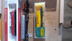 Vagones (además de los de la caja de iniciación), todos circularon en España excepto el cisterna de Shell. Algunos con su caja original (todos también comprados en mercadillo de Valencia), con referencia cuando la tengo: