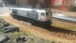 Y entretanto para seguirle quitando humildad... entre otros que estoy detrás de ellos... me he agenciado a un precio razonable la referencia de Startrain que pertenece a al locomotora 319.227 de Renfe mercancías. Hubo que hacerle una mini revisión pero en miras generales, esta perfecta.