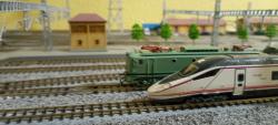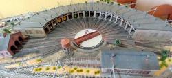 Buenas, voy a hablaros de mi maqueta. Como todos en casa se independizaron y al no tener a nadie que me dijera lo contrario, decidí ocupar una habitación entera para mi maqueta. las medidas son 4035 mm X 1933 mm, la longitud del circuito segun SCARM es de 114,03569 metros en escala n 1:160 y 18.245,71 metros en escala real. Todo el circuito esta realizado con vias KATO. Se compone de 4 circuitos independientes dos por sentido de la marcha. Tiene 37 desvios 22 a la izquierda y 15 a la derecha además de 6 desvios en cruce doble todos electricos. Tiene una plataforma giratoria para el deposito de locomotoras con 24 salidas.